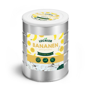 Unsere kleinen Dosen sind kein Wegwerfprodukt. Nach dem letzten Bananen-Stück kannst du sie weiterverwenden, z.B. als Geschenkverpackung, für neue Snack Abfüllungen to-go oder als Aufbewahrung für Kleinkram.